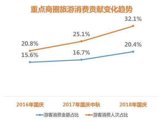 相較于2017年的國慶中秋超級黃金周,旅游消費金額同比增長10.4%,旅游消費人次同比增長9.3%。居民出游消費熱情持續(xù)高漲。