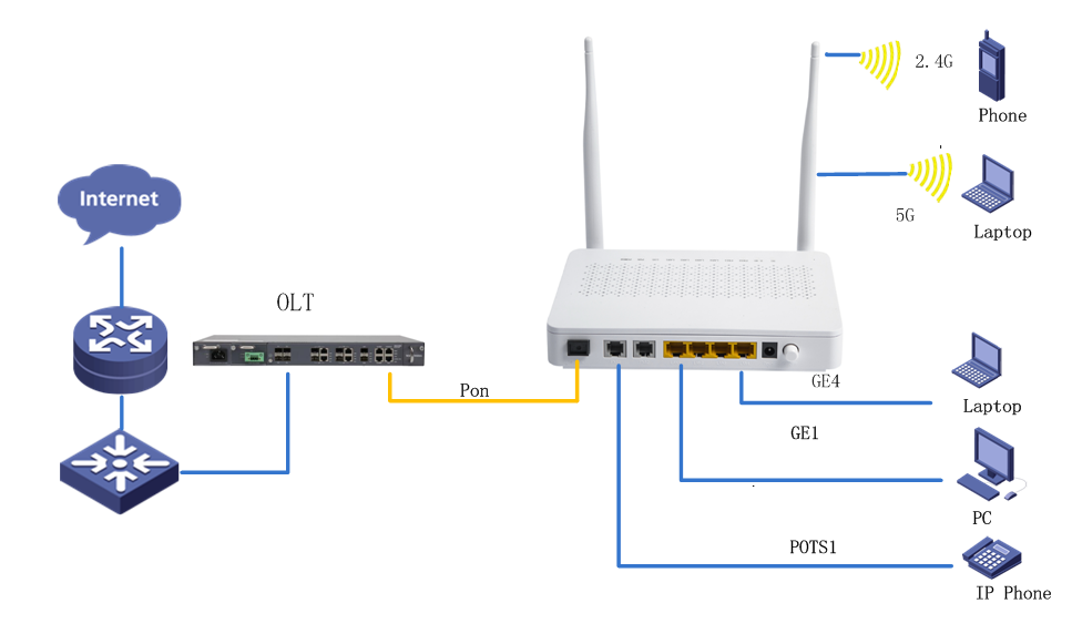 GDONU300-422 XPON HGU 4GE+2VOIP+WIFI(2.4G +5G)